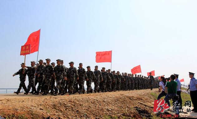 9時20分,參練人員、車輛、船只準(zhǔn)時到達(dá)演練指定位置,200名民兵應(yīng)急分隊隊員多為退役軍人,身體素質(zhì)優(yōu)良,紀(jì)律作風(fēng)過硬,是該市抗洪搶險的一支重要突擊力量;15名搶險技術(shù)隊員經(jīng)歷過1996、1998年抗洪,身經(jīng)百戰(zhàn),防汛處險經(jīng)驗豐富;電力搶險隊在演練中承擔(dān)著抗洪搶險時的電力保障的職責(zé);救災(zāi)安置隊在演練中承擔(dān)著洪澇災(zāi)害發(fā)生后的災(zāi)情收集、受災(zāi)群眾救濟(jì)安置的職責(zé);醫(yī)療救護(hù)隊在演練中承擔(dān)著防汛抗災(zāi)期間醫(yī)療衛(wèi)生保障的職責(zé);安保疏導(dǎo)隊在演練中承擔(dān)著抗洪搶險時,維護(hù)現(xiàn)場秩序,協(xié)助群眾安全有序轉(zhuǎn)移的職責(zé);由防汛指揮車、交通疏導(dǎo)車、搶險工程車、電力搶修車、醫(yī)療救護(hù)車、安全維穩(wěn)車、物資搶運(yùn)車、人員運(yùn)輸車、機(jī)動砂石船組成的防汛搶險專用車船隊,在演練中承擔(dān)執(zhí)行水利工程緊急搶險,運(yùn)送搶險人員和物資、電力線路搶修,緊急轉(zhuǎn)移和救護(hù)受洪水圍困群眾等任務(wù);由益陽軍分區(qū)組織的84人的舟橋分隊在抗洪搶險時承擔(dān)搜救和轉(zhuǎn)移群眾的職責(zé)。